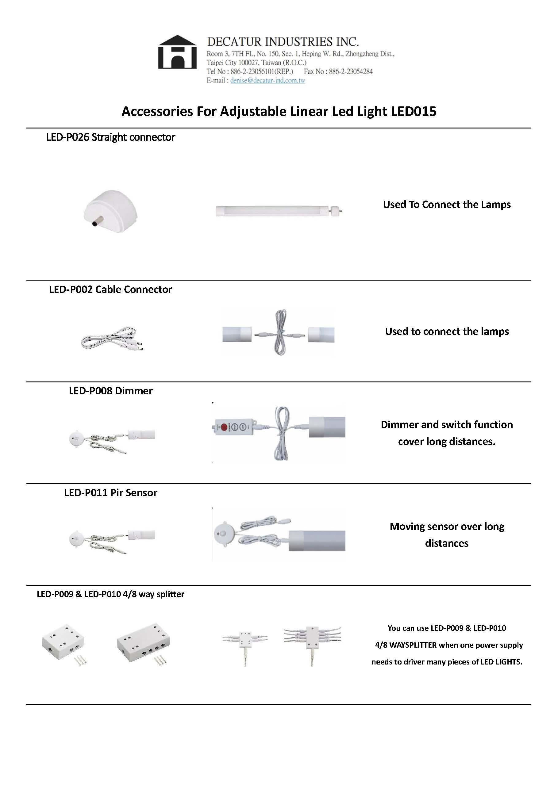 ضوء LED خطي قابل للتعديل بدون مفتاح LED015